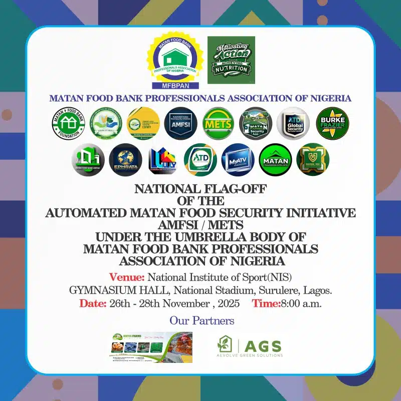 The Automated MATAN Food Security Initiative (AMFSI) and MATAN E-Transportation System (METS) will be officially flagged off on November 26th-28th, 2025, at the National Institute of Sport (NIS), National Stadium, Surulere, Lagos State, Nigeria.